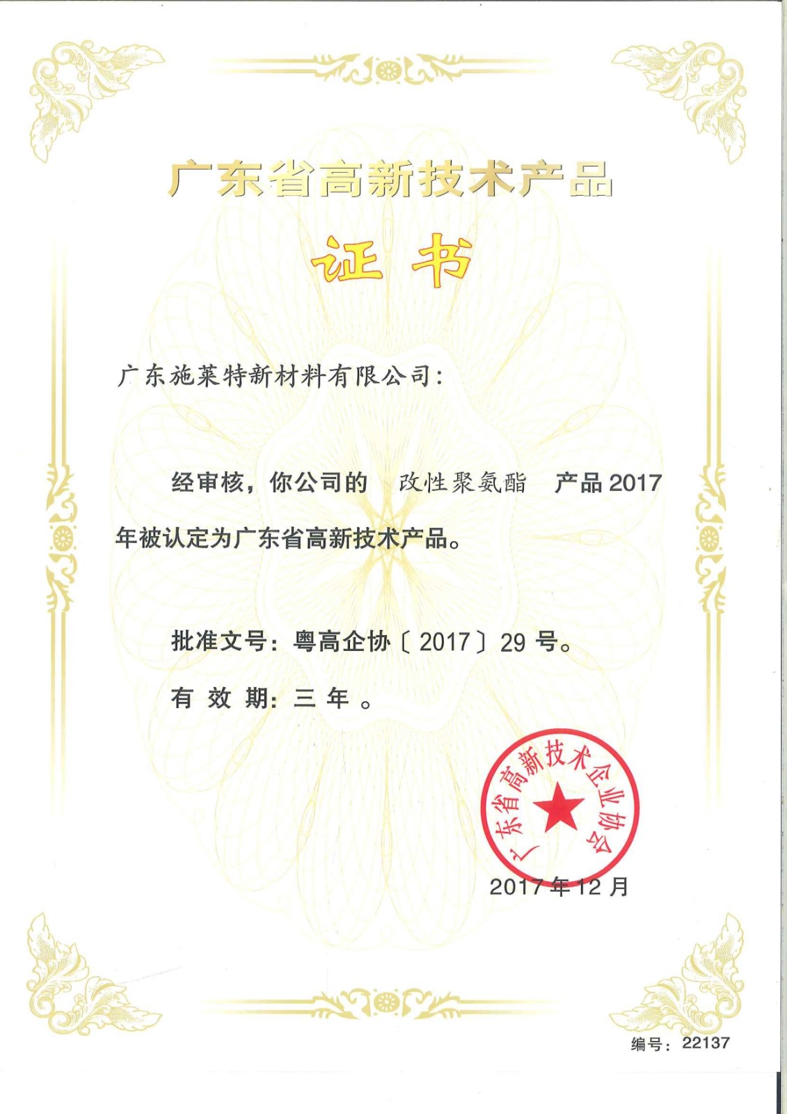 公司的改性聚酯、改性聚氨酯、特种树脂产品,被评为广东省高新技术产品。
